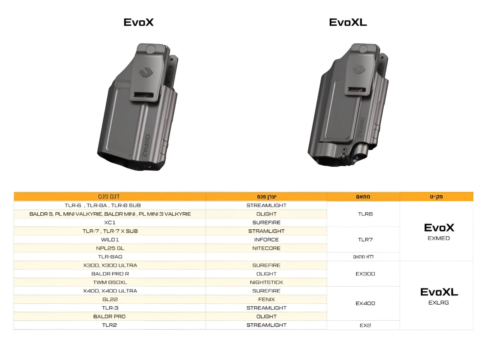 נרתיק אורפז EvoX הוא נרתיק נשיאה מגנטי דק, יציב ומודולרי המאפשר נשיאת אקדחים המצוידים בפנס וכלי אופטיקה.